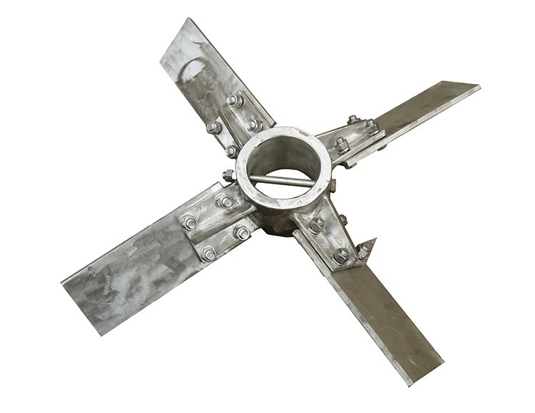 开启涡式搅拌器多是将叶片直接焊接于轮毂上,折叶开启涡轮搅拌器的叶片在焊接时,通常是在轮毂上开槽,叶片嵌入后施焊。小型开启涡轮搅拌器也有整体铸造的,特别是折叶的,如大量生产,用铸造的比焊接的更为方便。对于大直径的开启涡轮,也可将全部叶片或径向对称的一对做成与轮毂可拆连接的,以便于安装。