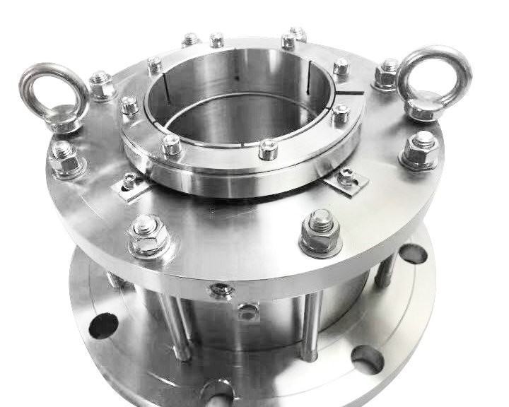 机械密封是一种旋转机械的轴封装置。比如离心泵、离心机、反应釜和压缩机等设备。由于传动轴贯穿在设备内外,这样,轴与设备之间存在一个圆周间隙,设备中的介质通过该间隙向外泄漏,如果设备内压力低于大气压,则空气向设备内泄漏,因此须有一个阻止泄漏的轴封装置。轴封的种类很多,由于机械密封具有泄漏量少和寿命长等优点,所以世界上机械密封是在这些设备主要的轴密封方式。机械密封又叫端面密封,在国家有关标准中是这样定义的:“由至少一对垂直于旋转轴线的端面在流体压力和补偿机构弹力(或磁力)的作用以及辅助密封的配合下保持贴合并相对滑动而构成的防止流体泄漏的装置。